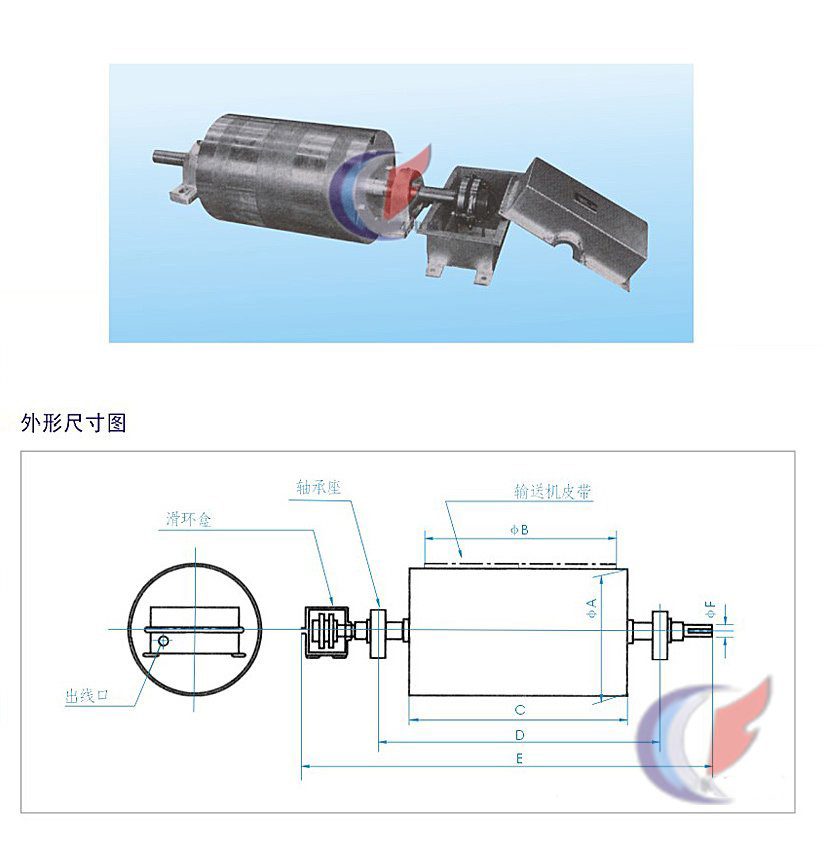 這個系列是替代帶式運輸機頭部皮帶輪作為主動輪使用。因而具有能連續(xù)除鐵的特點。由于能產(chǎn)生強大的磁力,多用于除去較小鐵件,并適用回收爐渣、型砂中的鐵件。 外形及安裝尺寸均與TD-75型帶式輸送機頭輪相同,
